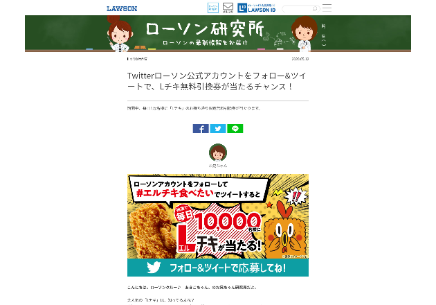 【株式会社ローソン】毎日1万名様に「Lチキ…
