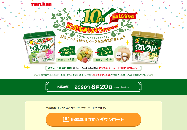 【マルサンアイ株式会社】 豆乳グルト10周…