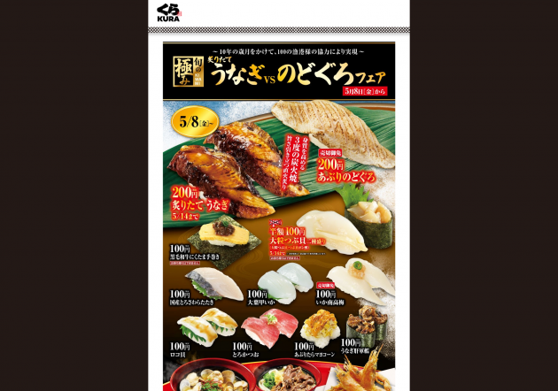 【くら寿司株式会社】うなぎVSのどぐろフェ…