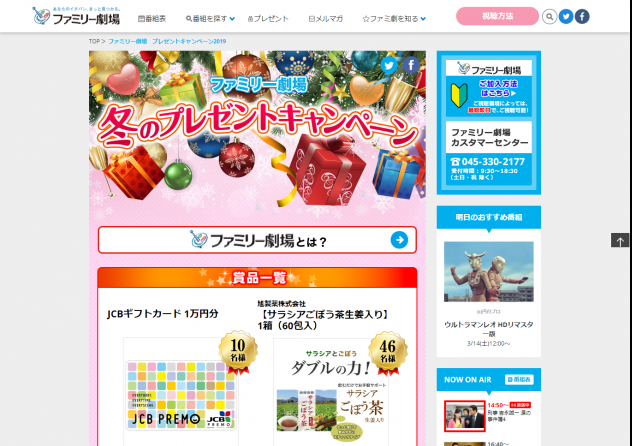 【ファミリー劇場】ファミリー劇場冬のプレゼ…