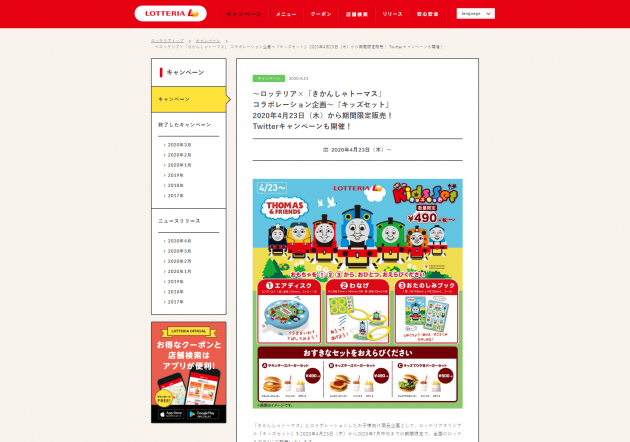 【株式会社ロッテリア】「きかんしゃトーマス…