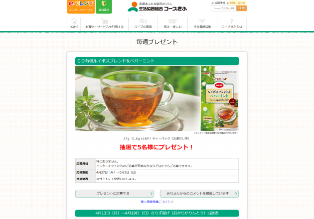 【生活協同組合コープぎふ】毎週プレゼント