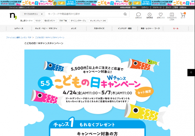 【株式会社ニッセン】こどもの日!Wチャンス…