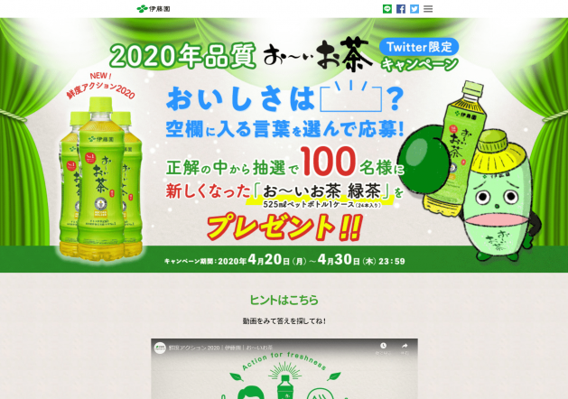 【株式会社伊藤園】2020品質「お~いお茶…