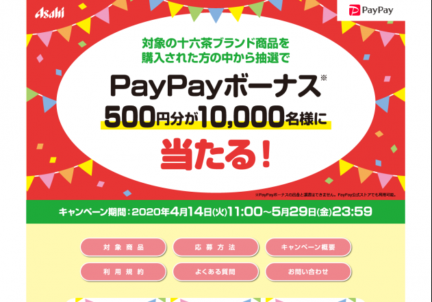 【アサヒビール株式会社】十六茶PayPay…
