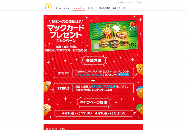 【日本マクドナルド株式会社】15ピースの正…