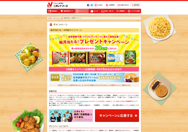 【株式会社ニチレイフーズ】毎月当たる!プレ…
