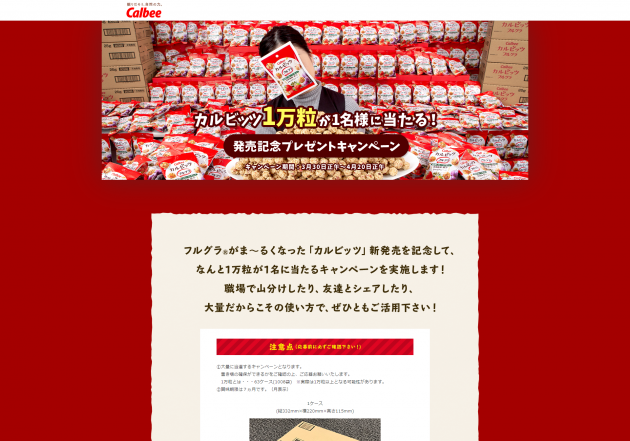 【カルビー株式会社】カルビッツ1万粒が1名…