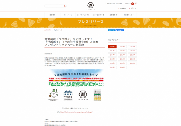 【株式会社湖池屋】「ウポポイ」入場券プレゼ…