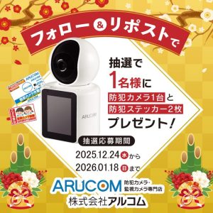 抽選で1名様に防犯カメラとステッカーがあた…