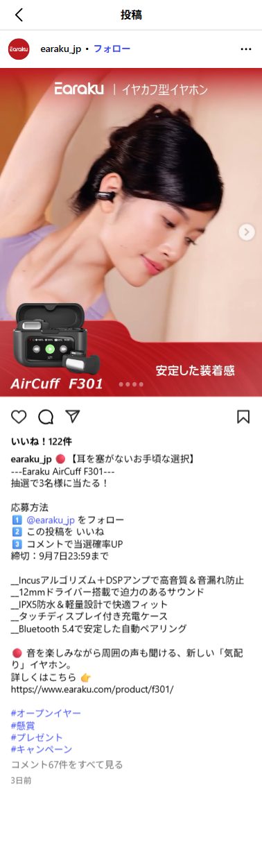 - —Earaku AirCuff F301— 抽選で3名様に当たる!