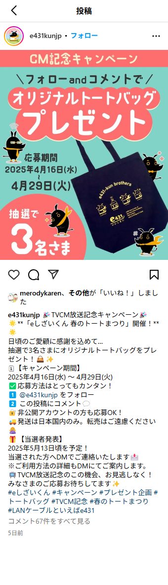 TVCM放送記念キャンペーン「eしざいくん 春のトートまつり」開催!